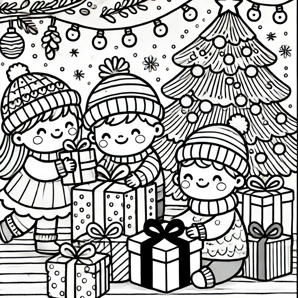 5. Vaikai, išpakuojantys dovanas po eglute 🎁