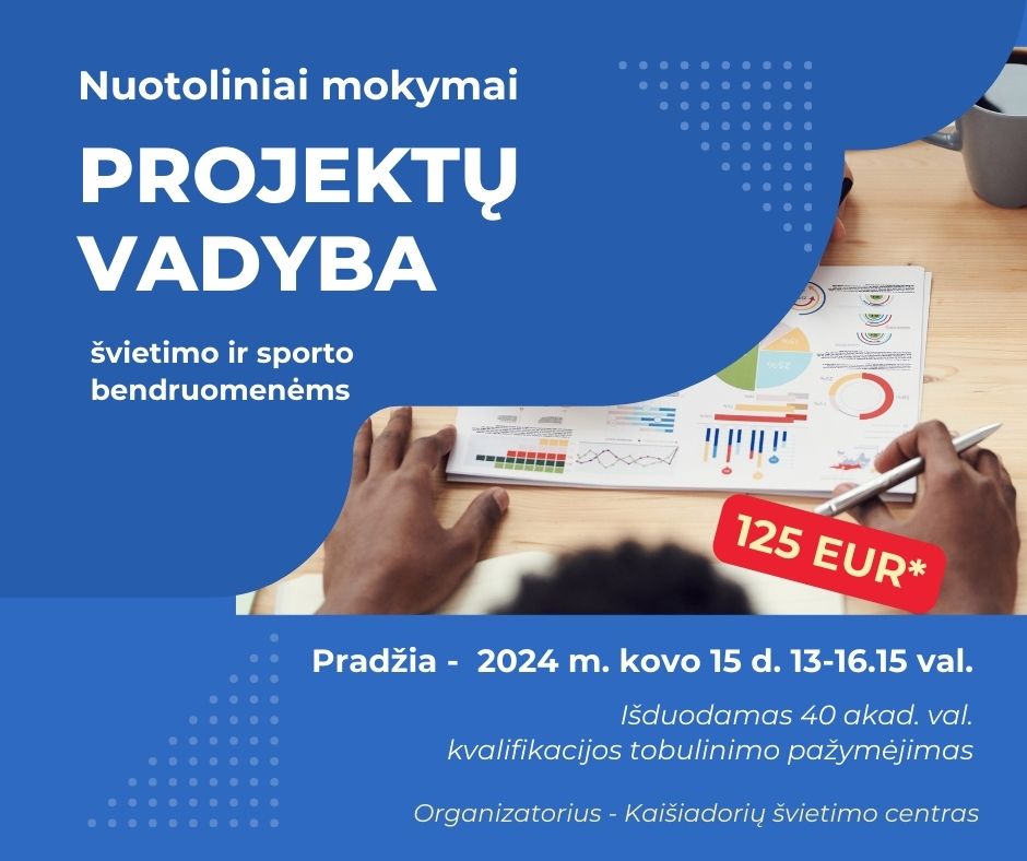2024 m. kovo 15 d. - balandžio 12 d. vyko mokymai „Projektų vadyba švietimo ir sporto bendruomenėms“, 40 val. kvalifikacijos tobulinimo programa. Mokymų dalyviai turėjo 20 val. nuotoliniu kontaktiniu būdu ir 20 val. savarankiško praktinio darbo.